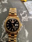 Herren Armbanduhr mit Chronograph und Datum Luxusuhr Gold Stahl + Box