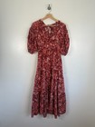 Ulla Johnson Kleid Gr. XS S Midi rot Blumen Stufen Puffärmel Rüschen Amora
