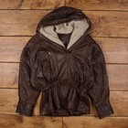 Vintage Vakko Sport Lederjacke L Damen 90er braun Kapuze gefüttert Biker Moto