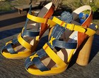 Tolle Riemchenschuhe von 'b store' in gelb blau rost, Leder, Gr. 37, neu