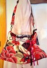 -------------------------bolso desigual de mano y bandolera, estampado floral rojo y azul