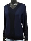 ETRO Milano Damen Pullover L Blau Schwarz 100% Wolle V-Ausschnitt Pullover Elegant