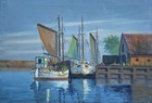 Impressionist Richard Friis *1924 Fischerboote im Hafen Ölbild 97x67cm