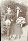 Antike Echt Foto Postkarte datiert 1924 Paar mit Hochzeitsstrauß.