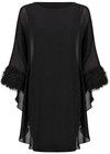 Schwarzes Damenkleid Chiffon Flügelärmel Gürtel A-Linie knielang