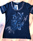 Lisa Campione DamenT-Shirt GR.38 Neu Schwarz Strasssteine Kurzarm