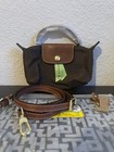 Longchamp Le Pliage Tragetasche Navy Braun, Nylon Leder, Goldknopf, Faltbar