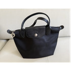 Longchamp Damen Tragetasche klein schwarz Nylon Leder Metallanhänger