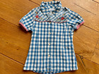 NEU: ROOM SEVEN: Bluse Karo kariert & bestickt Blumen blau – weiß – Gr. 116