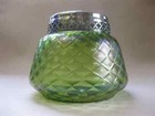 Antike / Vintage grün irisierende Glas Rosenschale mit Messingplatte ~ Kralik Loetz