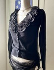 Schwarze Vintage Romantische Strickjacke mit Rüschen | Y2K Goth Fairy Grunge | Größe S/M