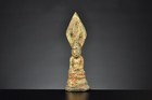 Smalll votive figure of the seated Buddha, gilded bronze, Shan States (Burma)